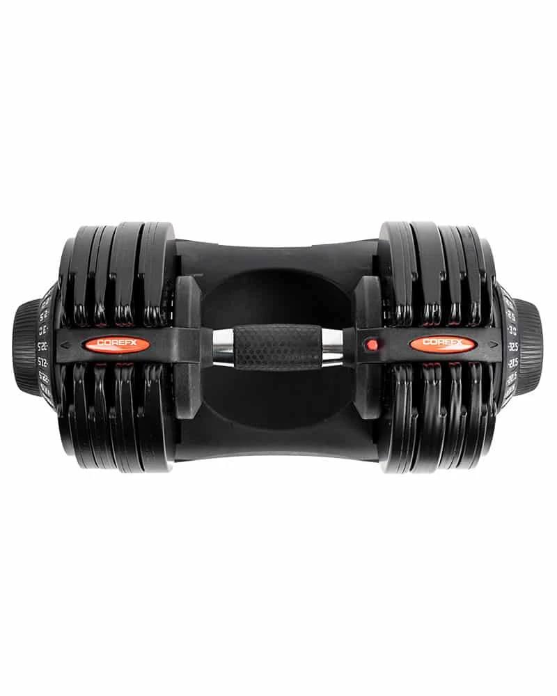 The COREFX Adjustable Dumbbell Set helps declutter your gym space, allowing you to perform at peak performance without any distractions.