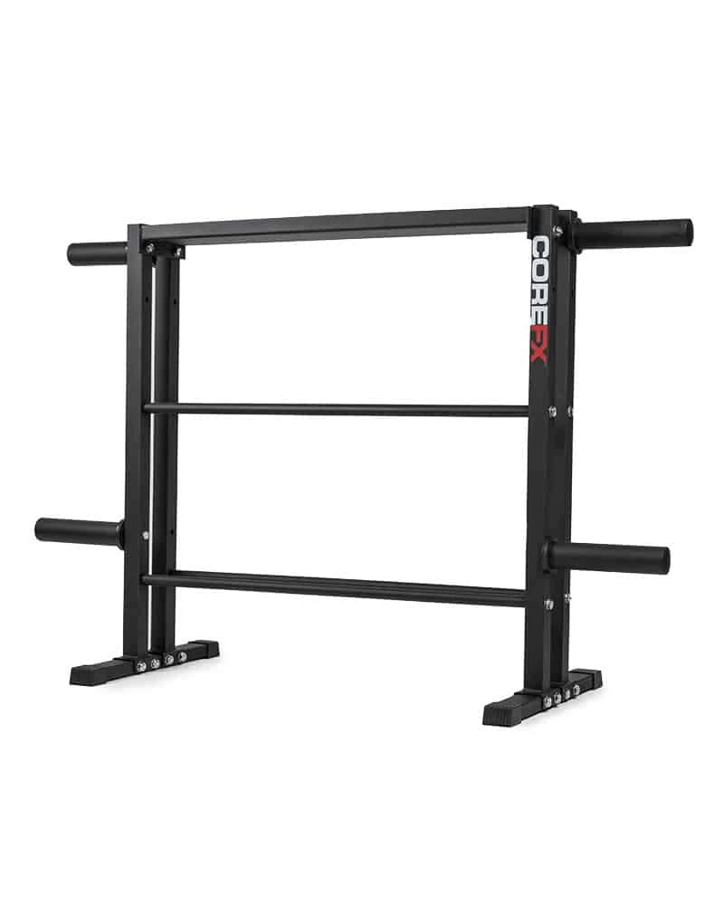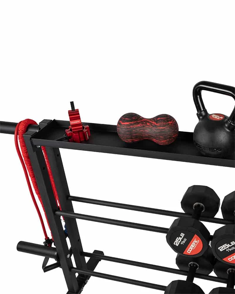 The COREFX Multi-Weight Storage unit will provide gym organization for all of your weighted strength training accessories. By providing three tiers of storage, your dumbbells, kettlebells and weight plates can be neatly stacked and out of the way during home workouts!