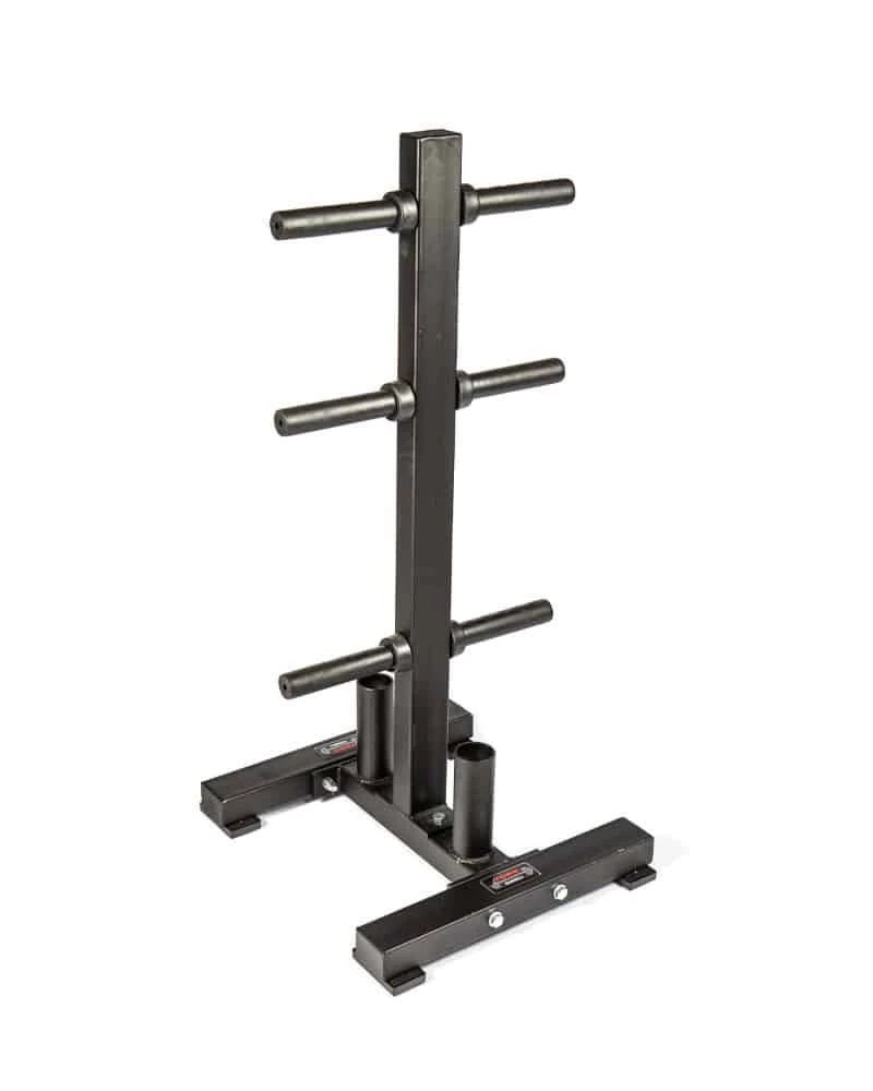- Weight Plate Pegs: With three pegs on each side of the York Olympic Weight Plate Tree, you can store your whole weight collection in one place. Each of the 6 pegs are 7.5” long and can hold 2.5 to 45 LB 2” plates.